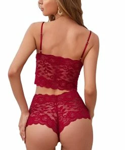 Top 10 π PajamaCity Lace Pajamas Lingerie Set High Waist Sleepwear Bra And Panty π Christmas Pajama Bow Ties Burgundy Red π