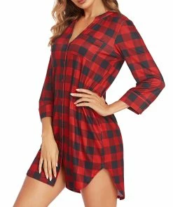 Promo β PajamaCity π© Women’s Nightgown Striped Sleepwear 3/4 Sleeves Nightshirts Soft Button Sleep π Dress Pattern7-plaid Medium Pattern7-plaid π