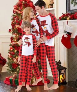 Deals π IF Family Snowman Red & Black | Family π Christmas Pajamas | π© Womens-Medium π§¨