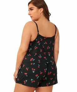 Deals π€© PajamaCity π© Women’s Plus Size Pajamas Cherry Print Cami Top And Shorts A-black π§¨