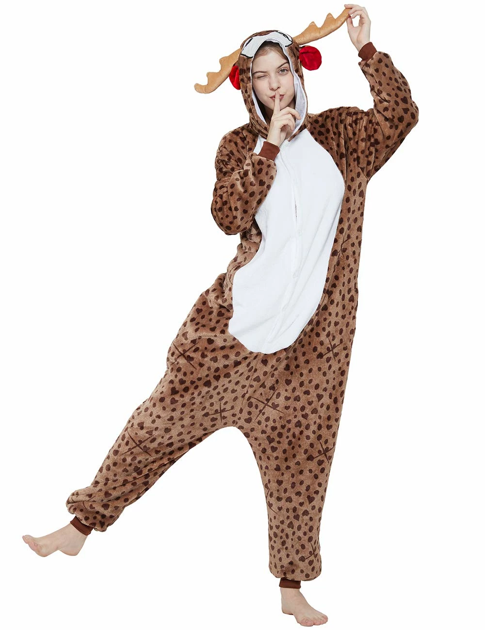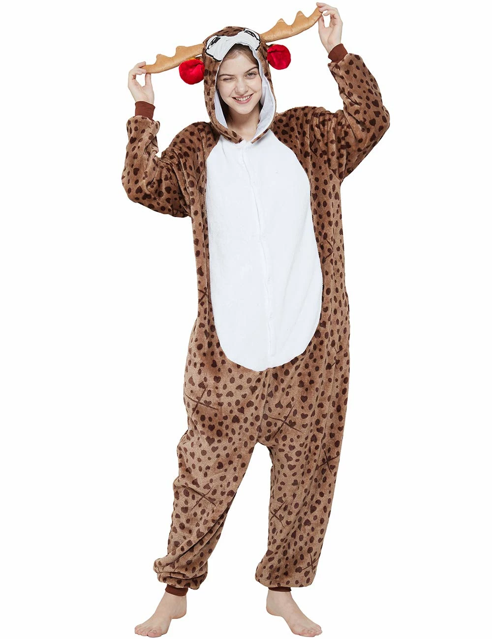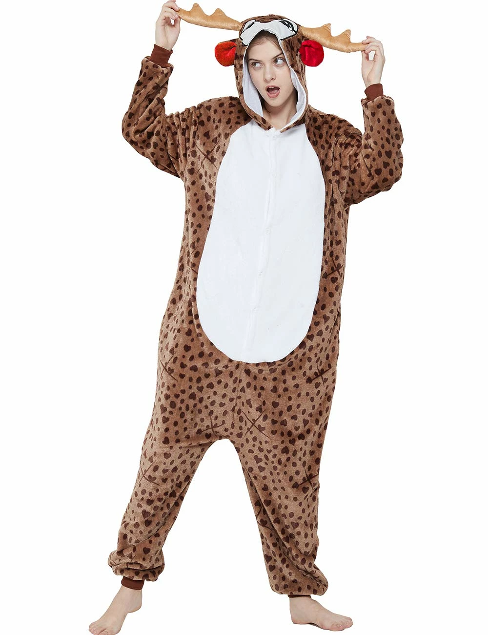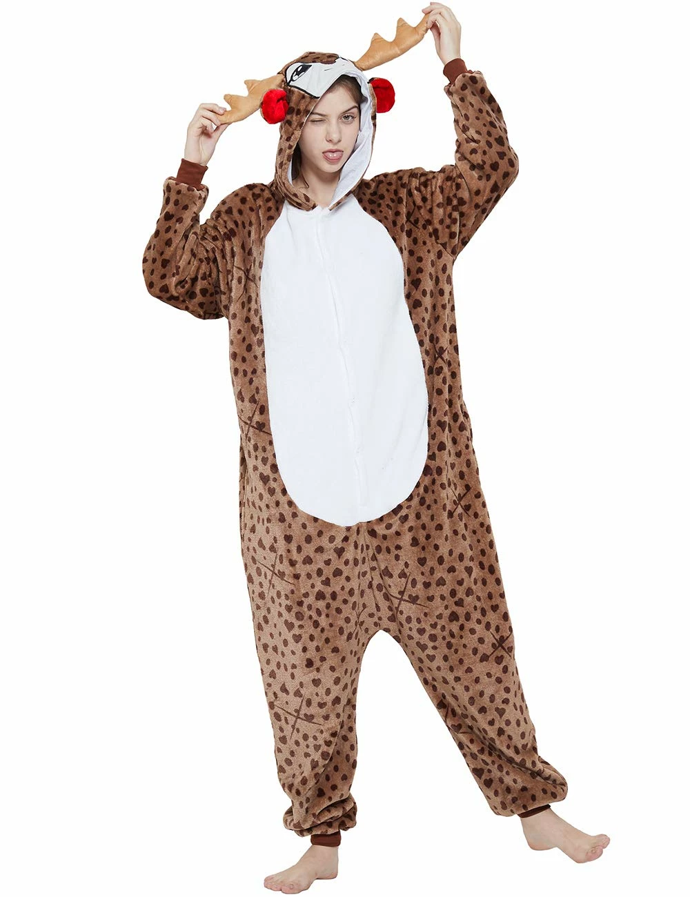 SKU: B08BQZNRPG Categories: Christmas, Womens Christmas Pajamas Tags: ANBOTA, Brown Reindeer | Adult Christmas Onesie for Womens, Size-small