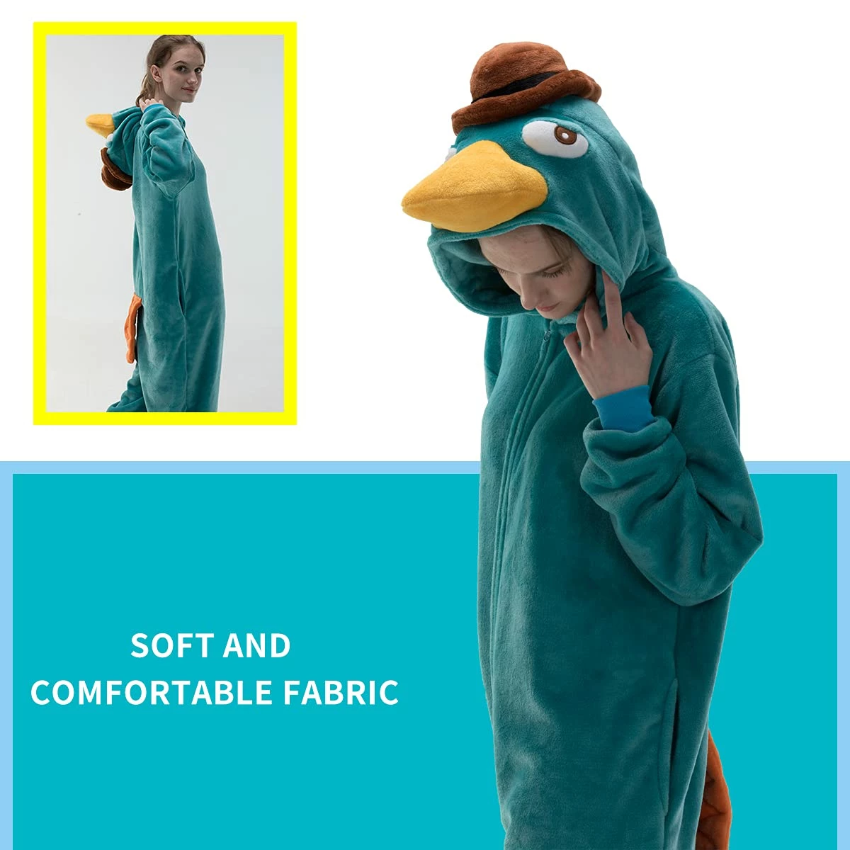 - The image design of duckbill costume is vivid and life like.
