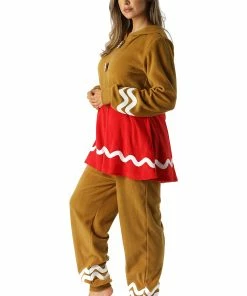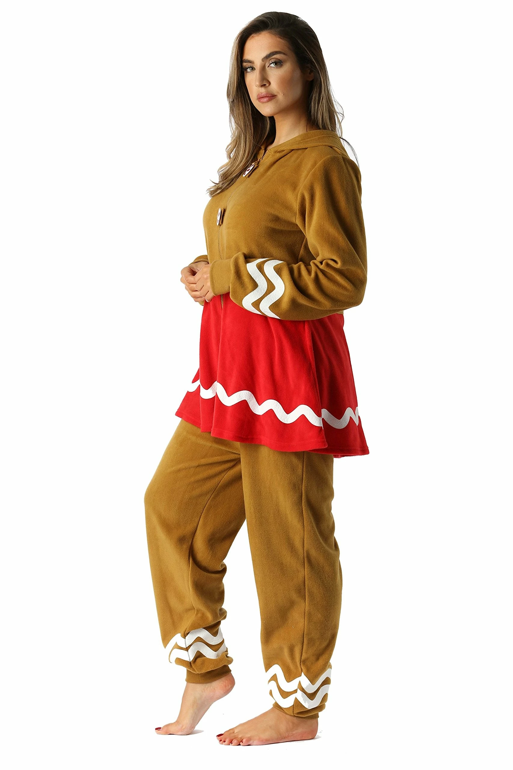- STANDOUT QUALITY: Enjoy a taste of durability with the high quality mix of extra-strong stitching, sturdy full zippers, well-done applique, and knit fabric that handles well in the wash without running color. Our hooded holiday onesie for women come in XS-XXL to fit most body frames.