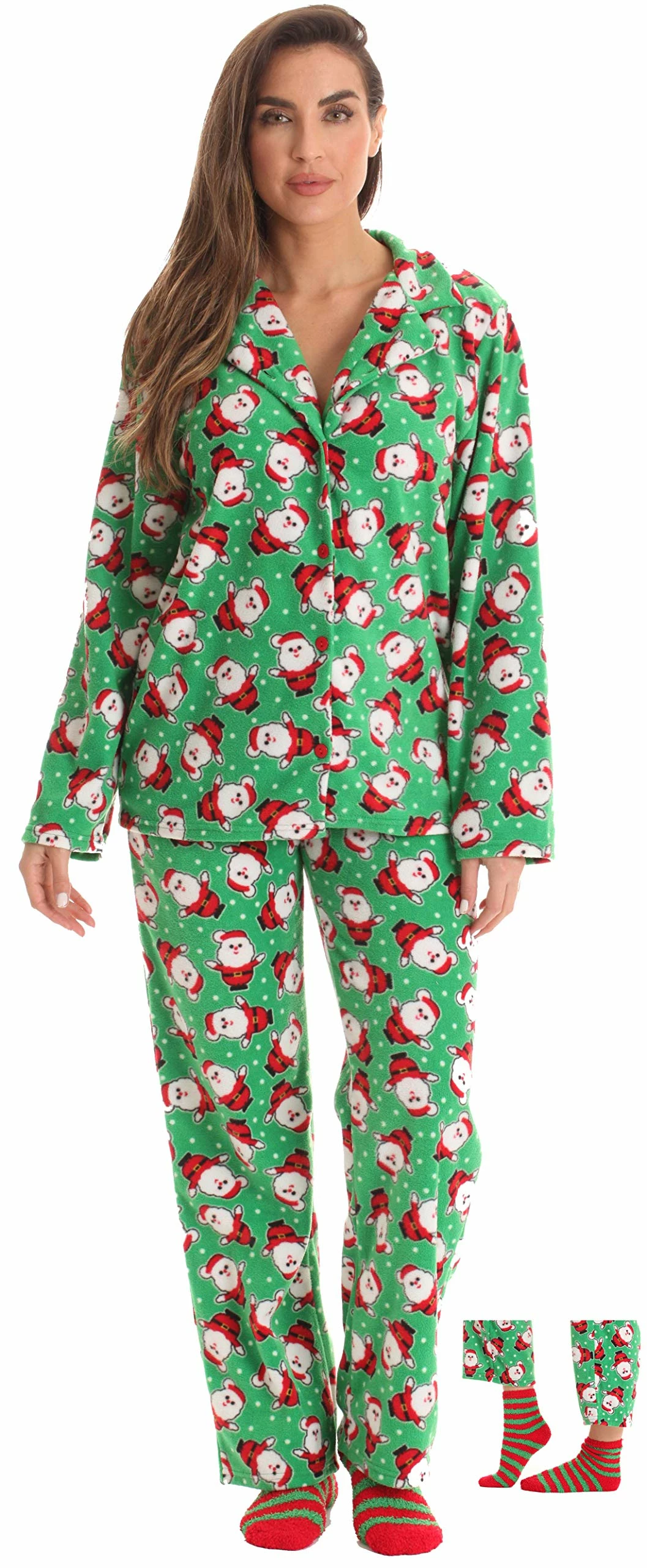 New βŒ› #followme Green Santa | Adult πŸ”” Christmas Pajamas For πŸ‘© Womens | Medium πŸŽ‰