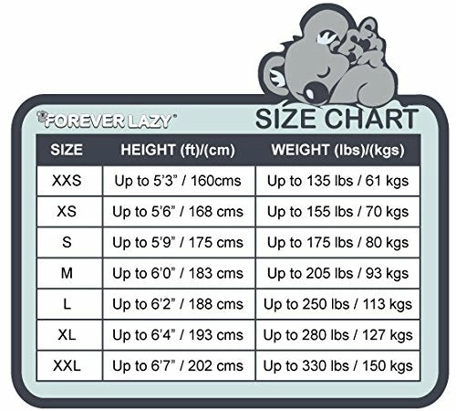- RELAXED, UNISEX SIZING – Our sizing does not follow any traditional sizing because the onesies are unisex. As a result, it is extremely important that you follow our Forever Lazy size chart in the secondary images. Start with the height column on the size chart, then slide over and make sure your weight is within the size for your height. If not, size up until your weight is found.