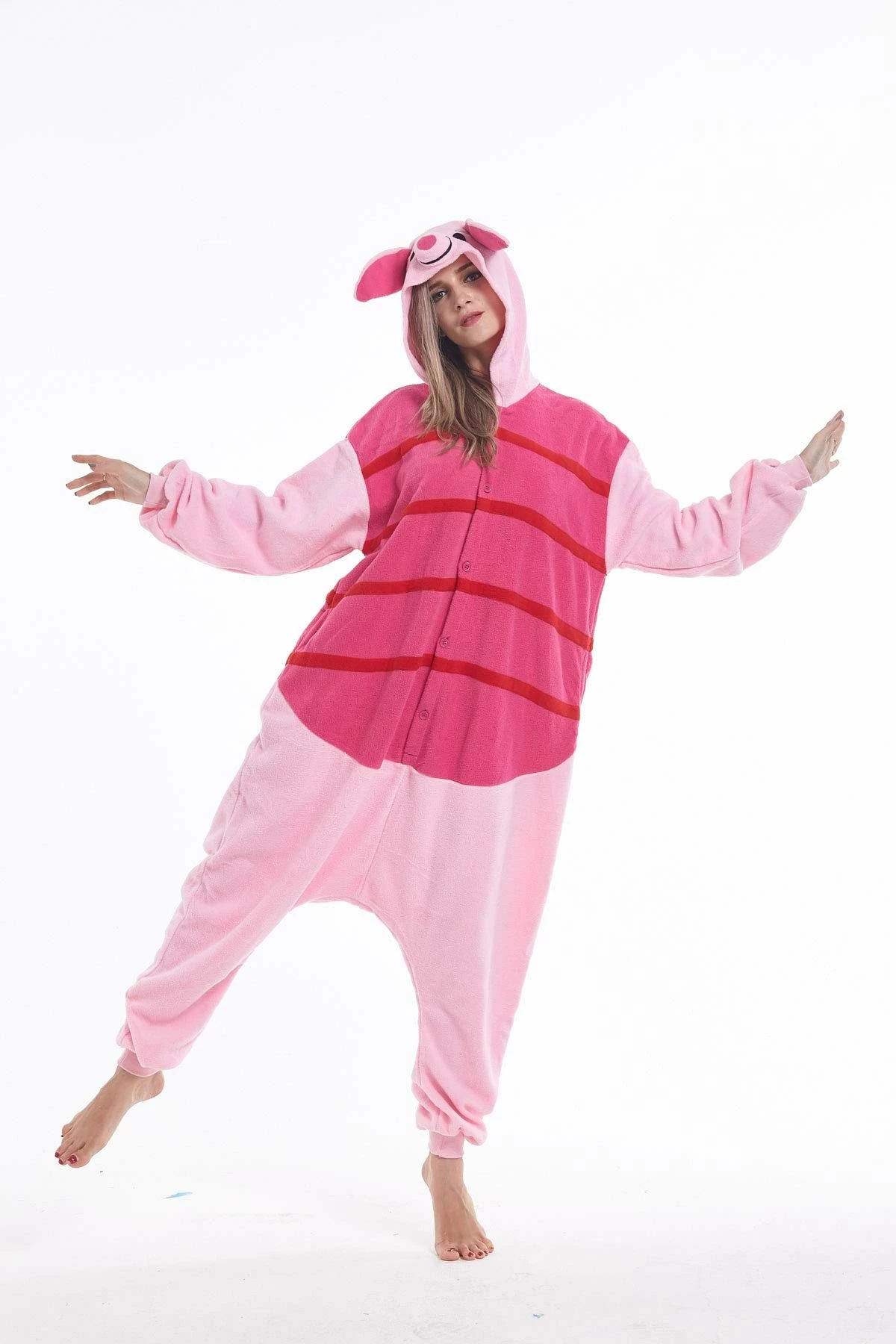 - [Style Feature] this cosplay costume pajamas is designed according to animal image, there are vivid cute eye,mouth,nose on the hood and tail on the back of the costume,it is also designed as onesie and button down in the front the loosing style make you easy to wear and take off.