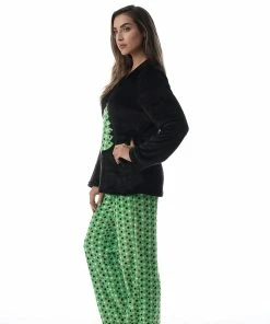 Pajama Set with Matching Socks Fabric Crushed Panne Velvet Plush Fuzzy Fleece