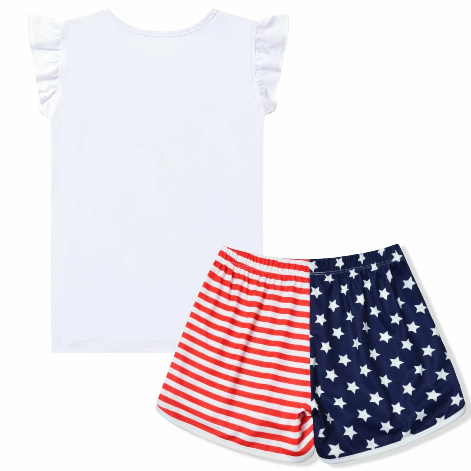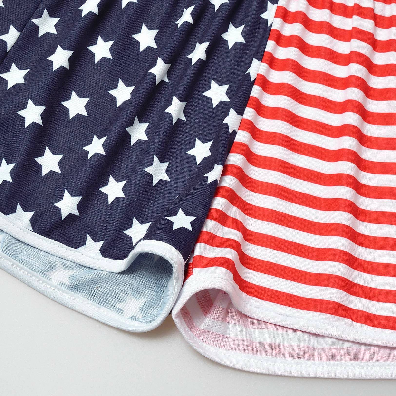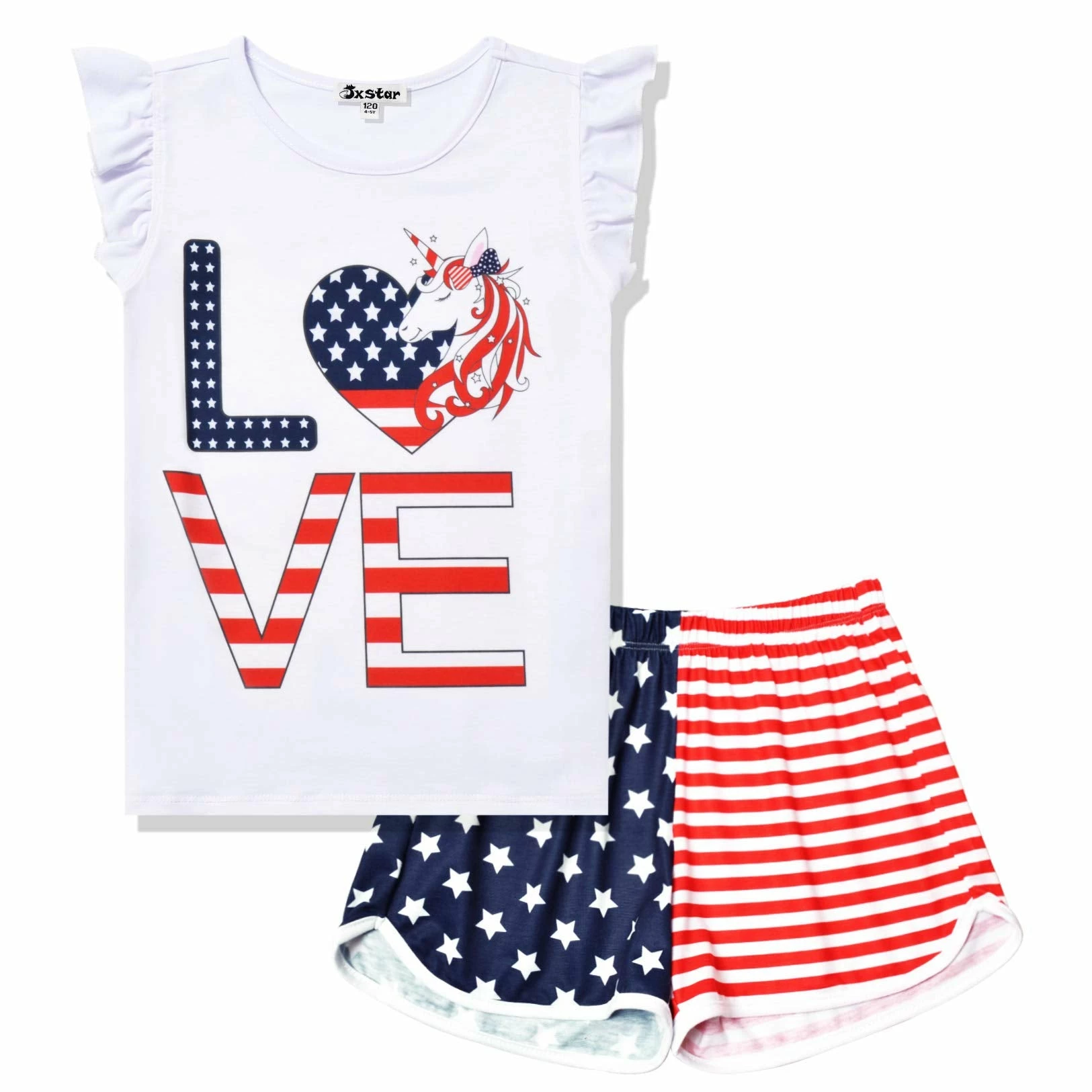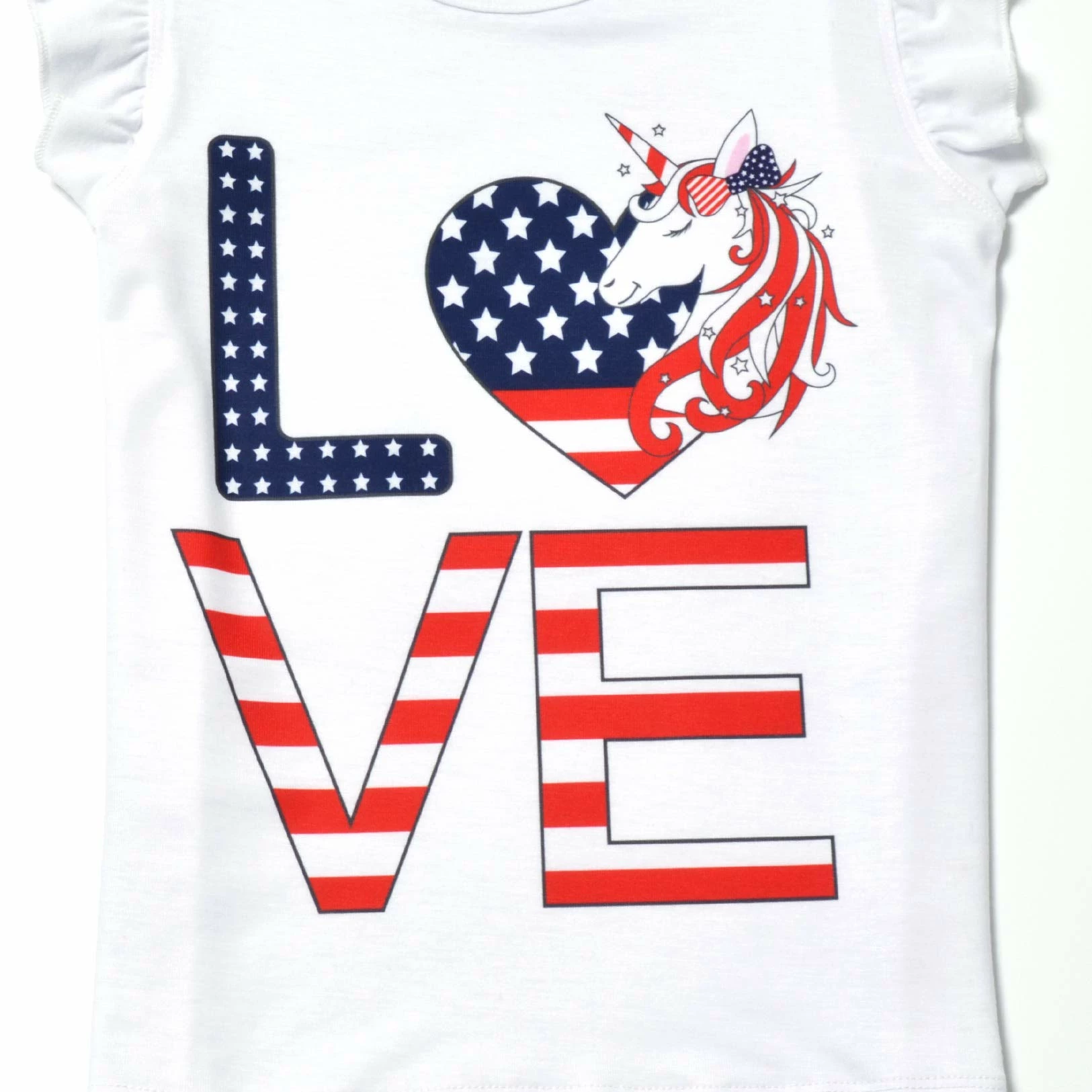 - Cute USA flag shorts and unicorn face shirts for 4th July, Independence Day, Red White and Blue Day