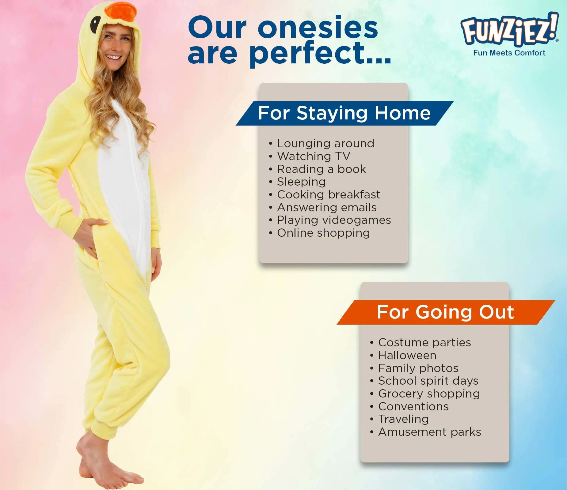 - SIZING & CARE INSTRUCTIONS – We recommend your new onesie costumes be hand washed and laid flat to dry. Available in adult sizes X-Small through X-Large. See size chart for details.