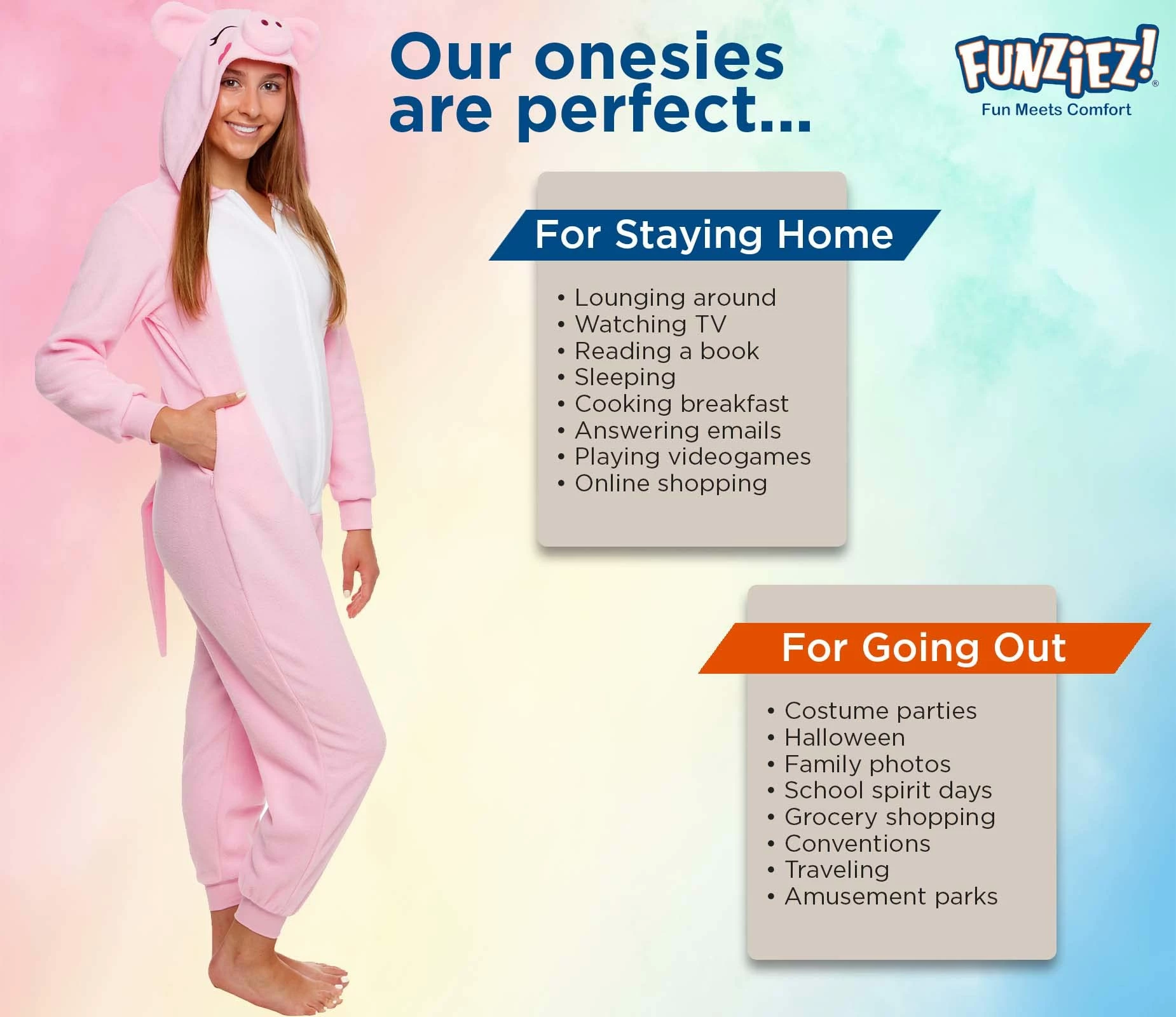 - BRING OUT YOUR WILD SIDE – From lovingly stitched face details on the hood, to tails and beyond, this pig onesies feature a hood with eyes, snout, and embroidered heart cheeks for full effect.