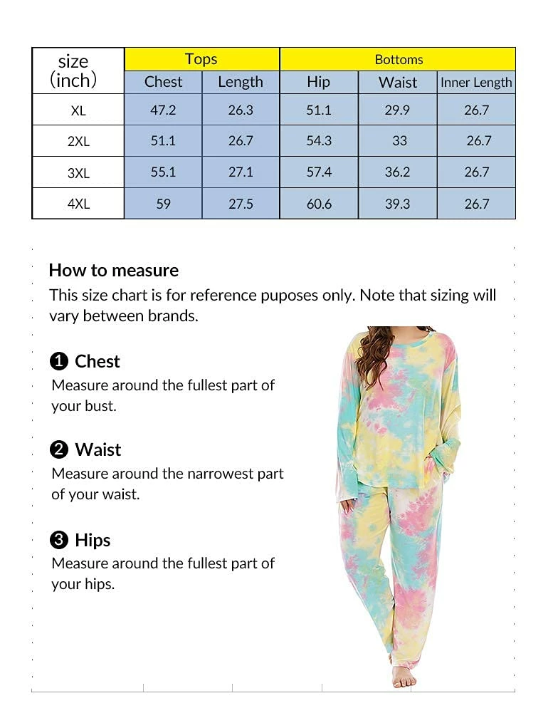 - Women pajamas set pants Pjs sets,A variety of colors are available like tie-dye printed and solid color,long sleeve shirts with pants are always can be your first choice for the Household or sleeping.