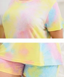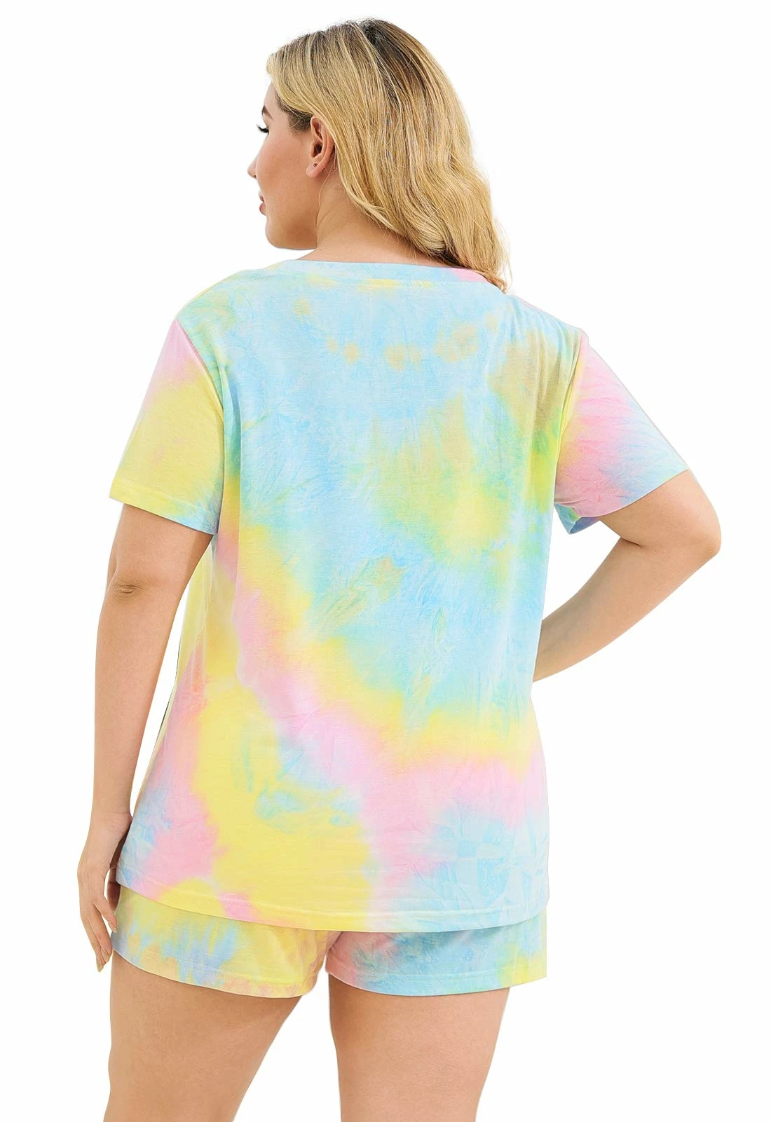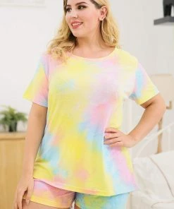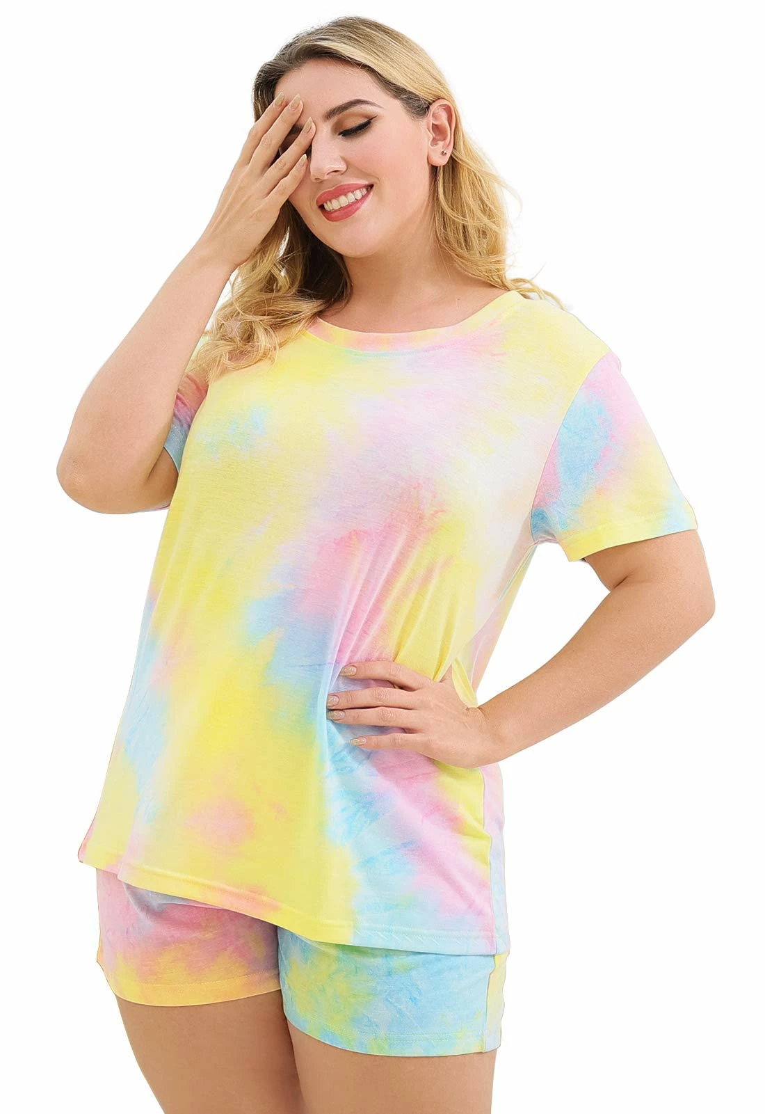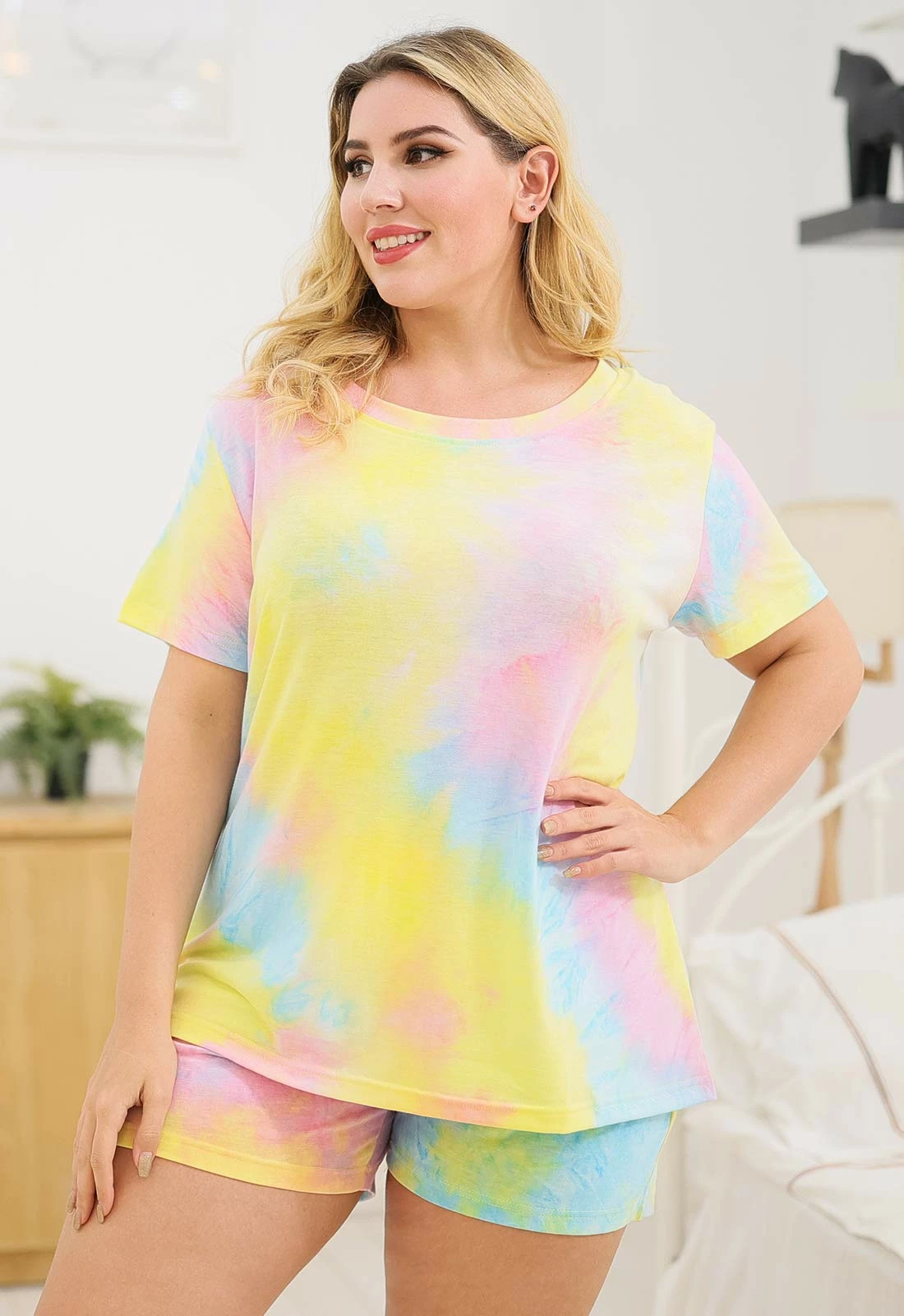 - Fashion tie dye printPlus size pajamas for women whit pocket,Features an adorable tie-dye, short sleeves, round neck, oversized, loose-fitting, elastic waist. Two piece casual big size set nightwear for women. New chic tie dye patterned that keeps you fashion all the time.