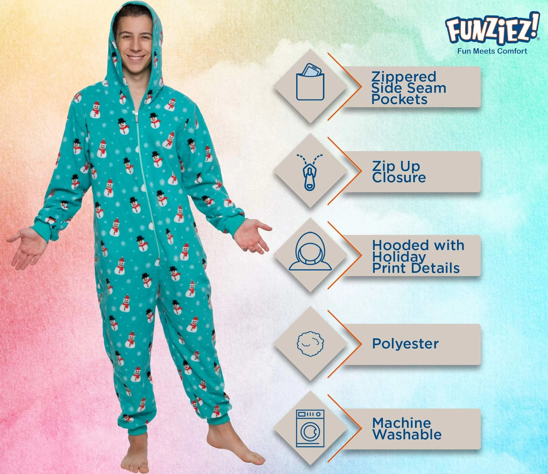 - FANTASTICALLY FESTIVE – ‘Tis the season for cute jumpsuit pajamas! The all-over snowman print is sure to please even the most discerning tastes, with contrast color cuffs to complete the look.