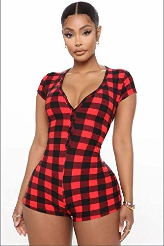 - Fashion Design: Sexy Women’s Christmas Pajamas Onesies, Deep v neck jumpsuit short pants, One piece long rompers shortall pajamas. Button down short-sleeved bodycon overall tracksuit.