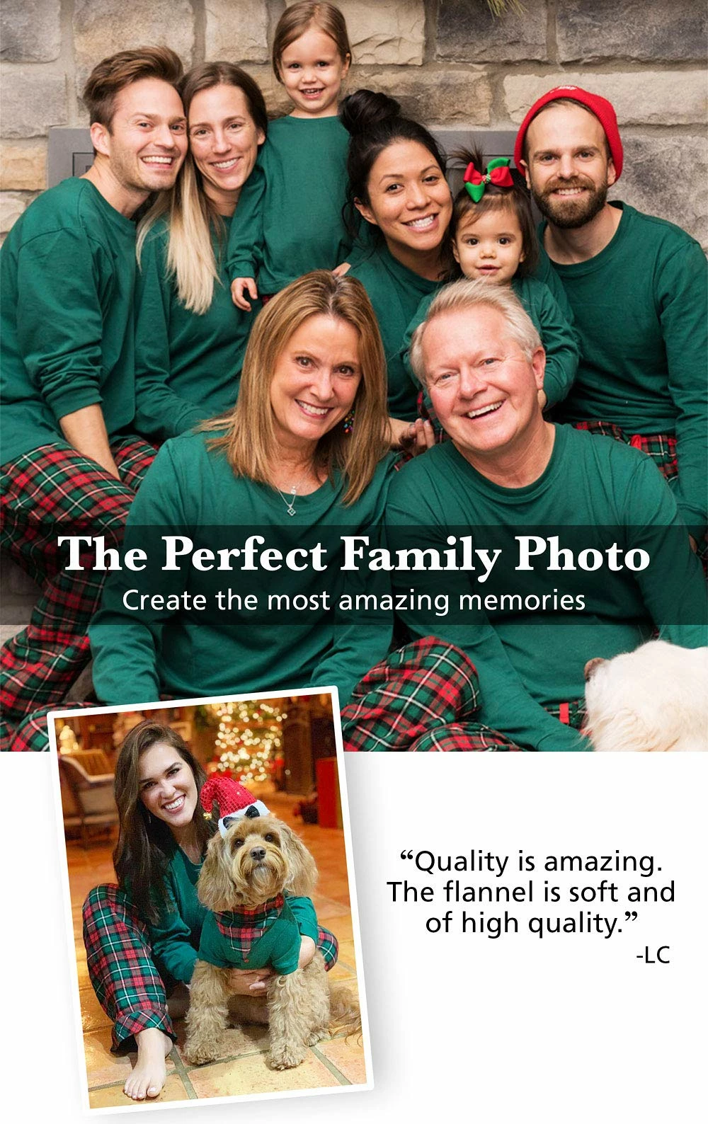- COZY & COMFORTABLE CLASSICS Make it a Christmas theyll remember with festive plaid matching family pajamas; Featuring red and green plaid pants and a long-sleeve, crew neck top in evergreen; High quality PJs you’ll enjoy for years to come
