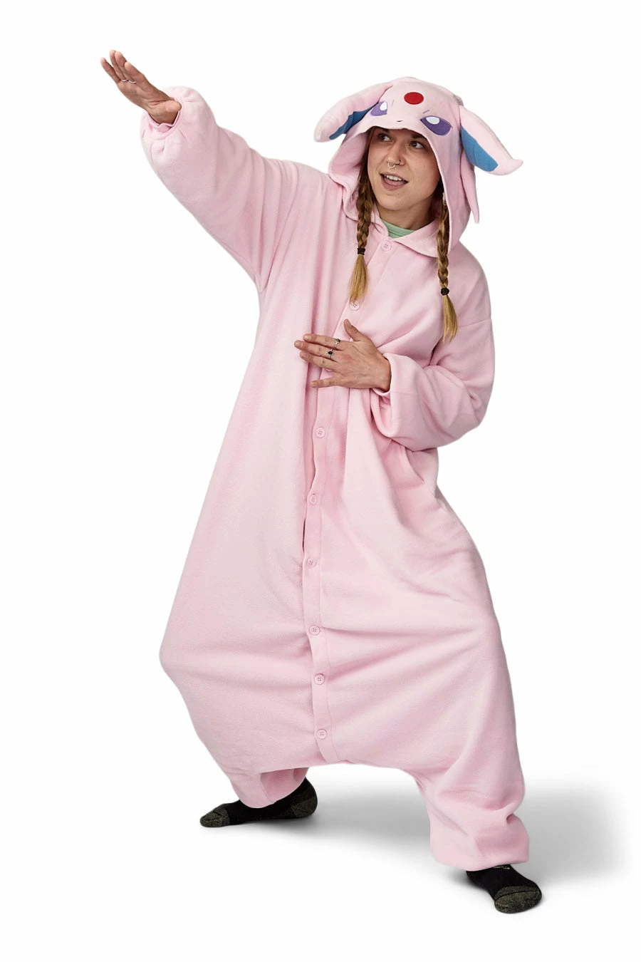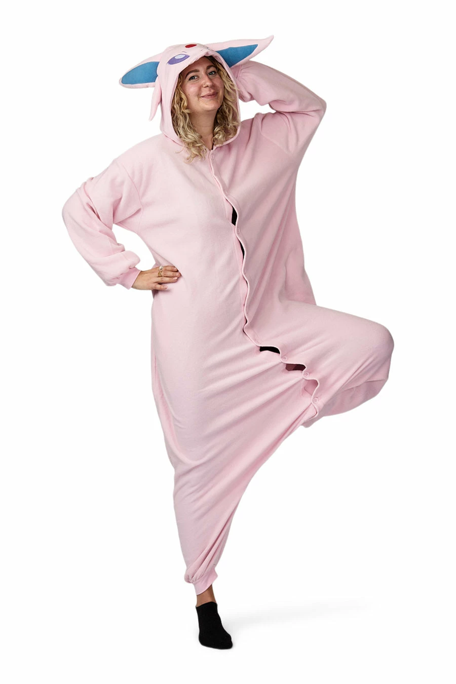 Hereβs a little bit of background info on this PokΓ©mon for all of you not in the know. Espeon happens to be a dainty creature that is covered in velvety, lilac fur. Espeon features a small red gem on its forehead. And this gem is what gives Espeon the psychic abilities it uses to protect its Trainer from danger. So, if you want to be a dainty, purple creature with psychic abilities this is the perfect PokΓ©mon onesie for you.Β