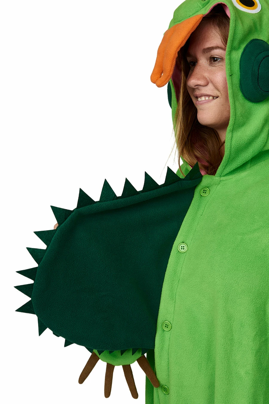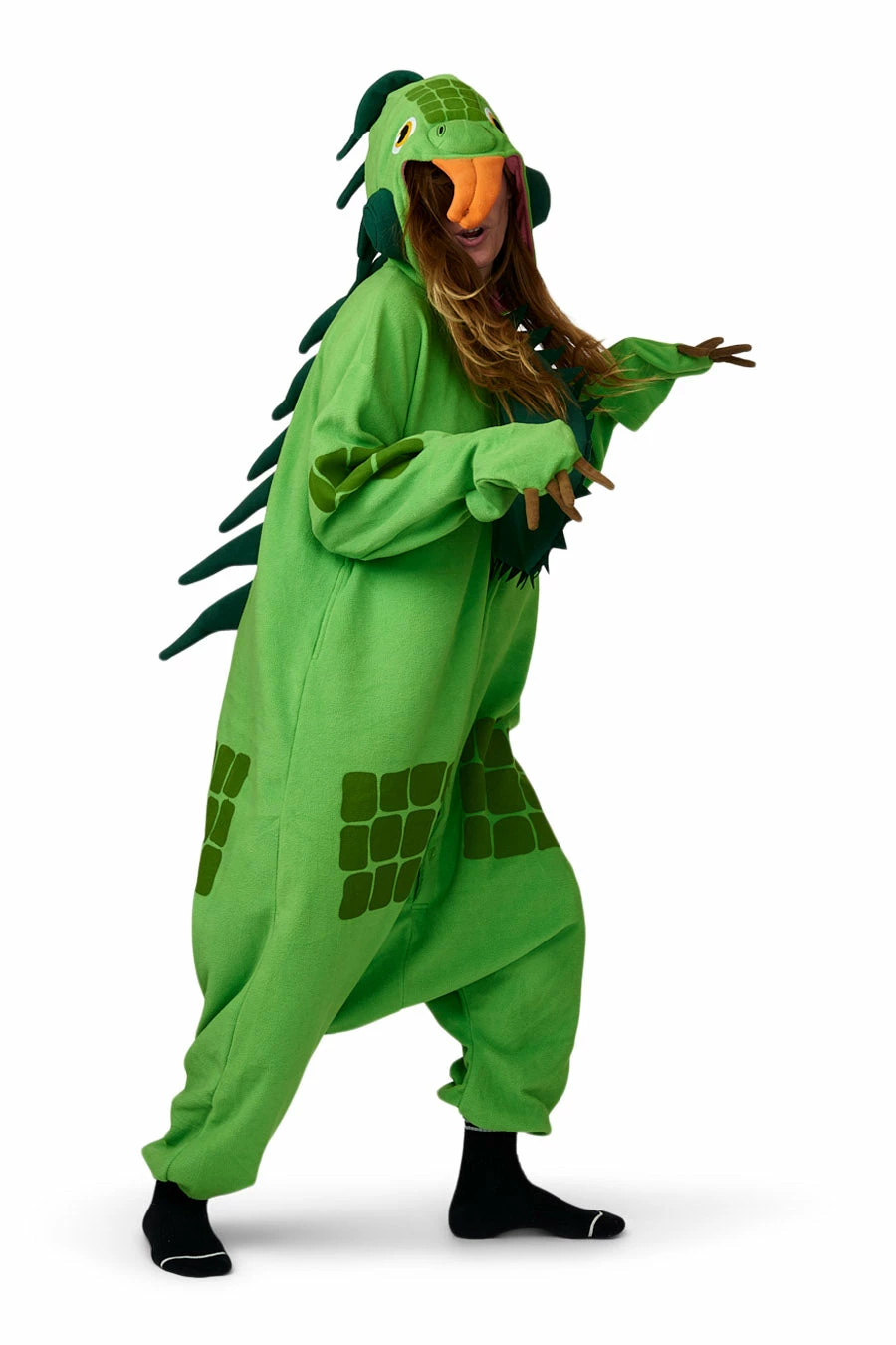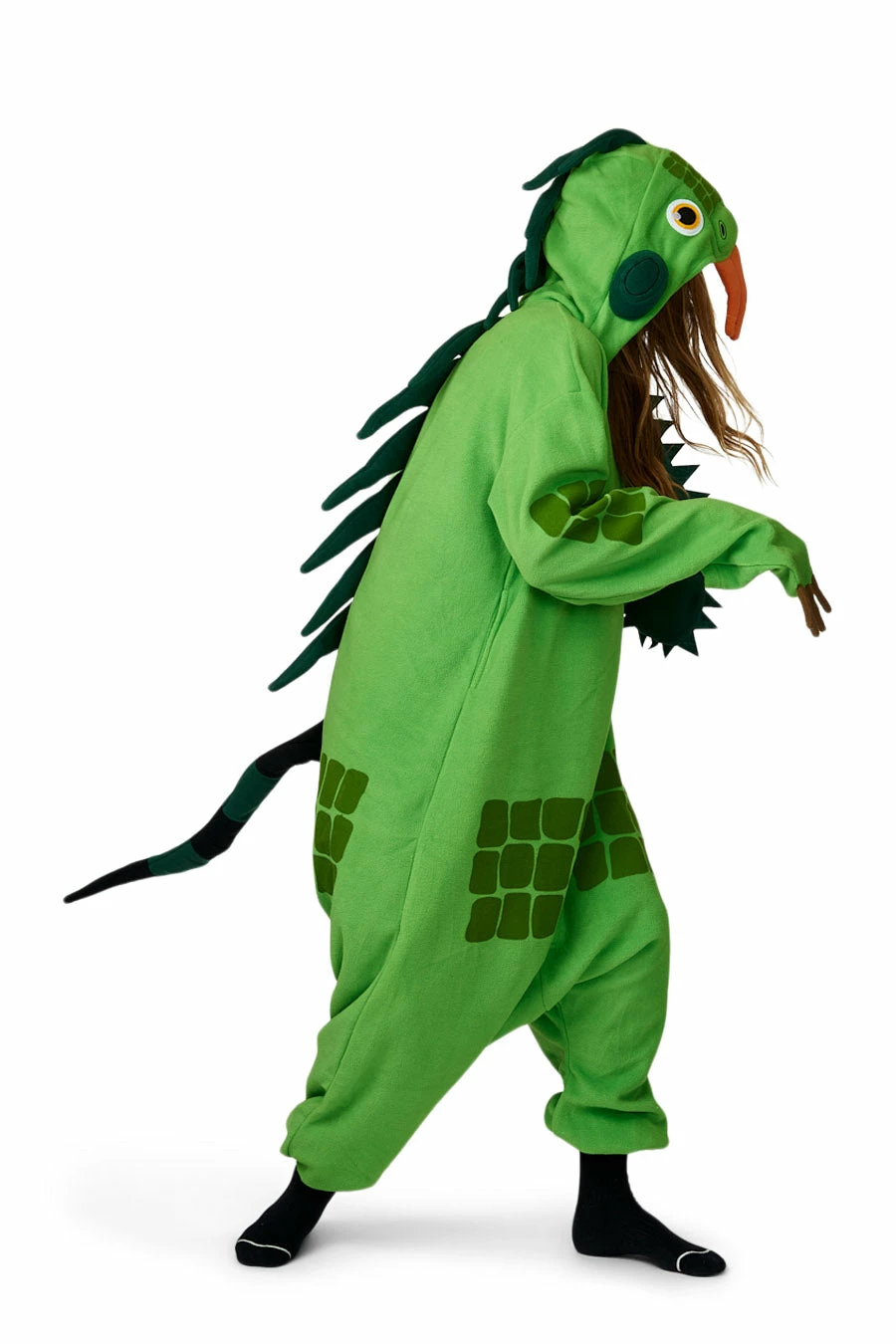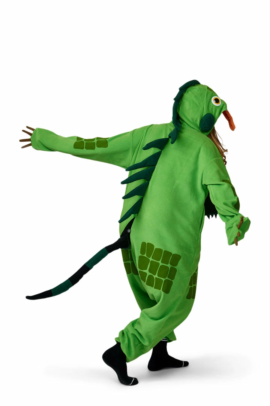 What has sharp teeth, powerful eyesight, as well as the ability to regrow its tail? A green iguana, of course! The ultimate in lounge lizard wear, this Green Iguana Kigurumi features a great range of features. From its embroidered hood to its clawed mitts, this is one animal onesie that will make you say βIguana get me one of these!β Seriously, you will be basking in sheer comfort when wearing this beautifully made and amazingly lux Kigurumi.Β