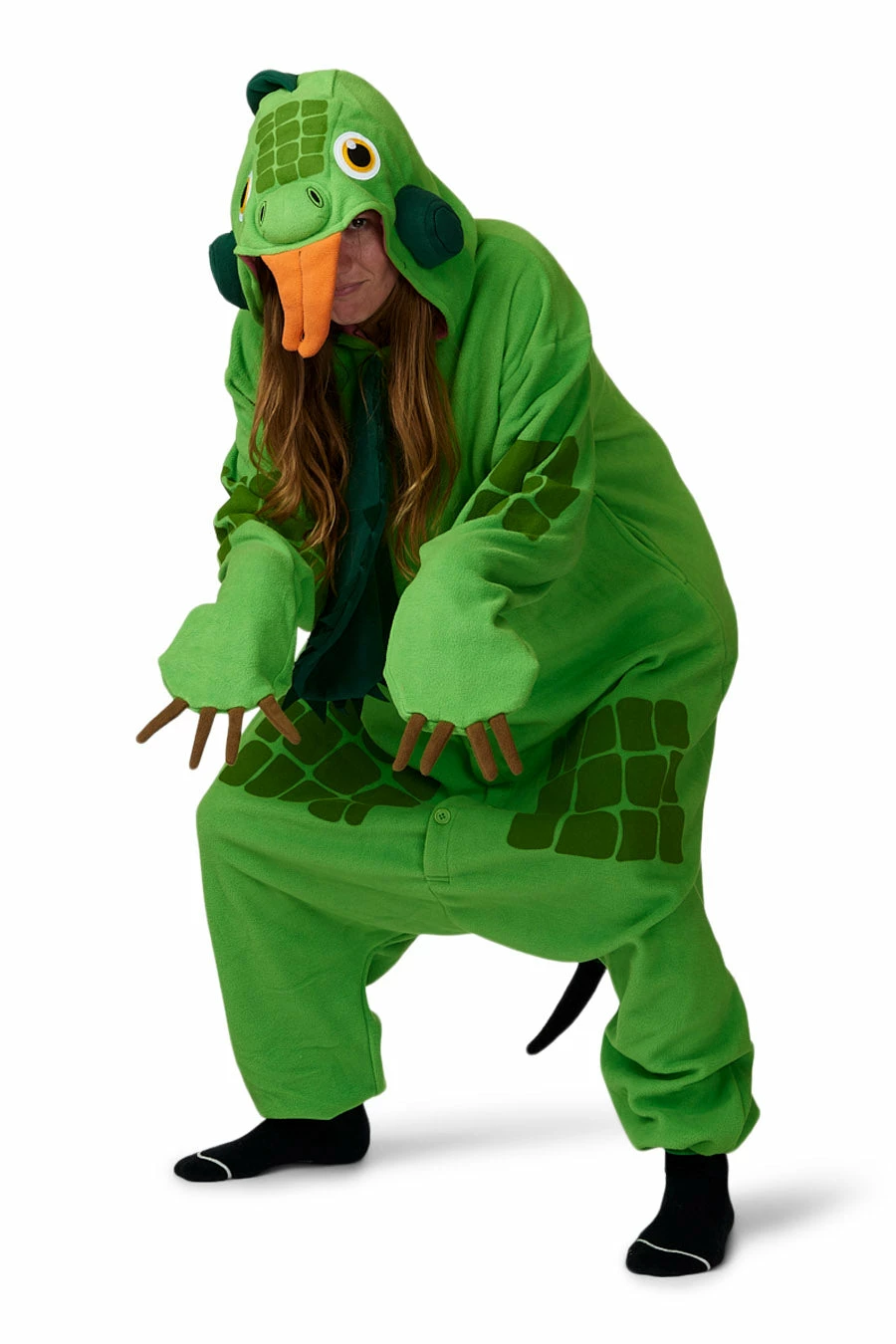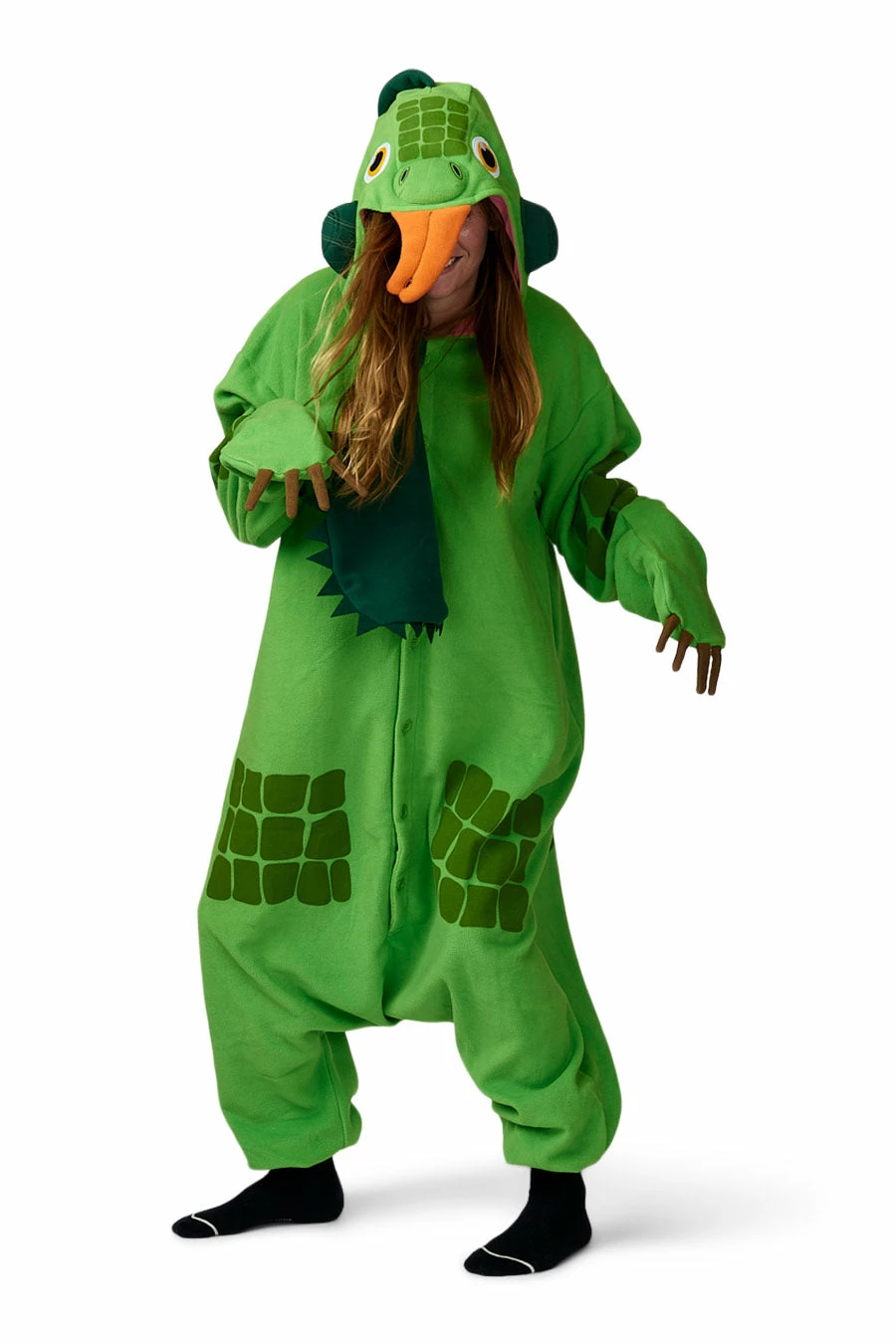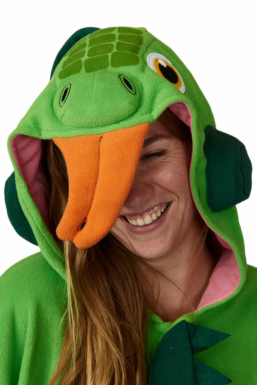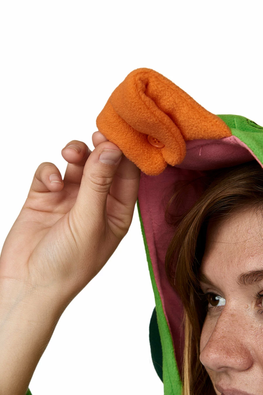 What has sharp teeth, powerful eyesight, as well as the ability to regrow its tail? A green iguana, of course! The ultimate in lounge lizard wear, this Green Iguana Kigurumi features a great range of features. From its embroidered hood to its clawed mitts, this is one animal onesie that will make you say βIguana get me one of these!β Seriously, you will be basking in sheer comfort when wearing this beautifully made and amazingly lux Kigurumi.Β