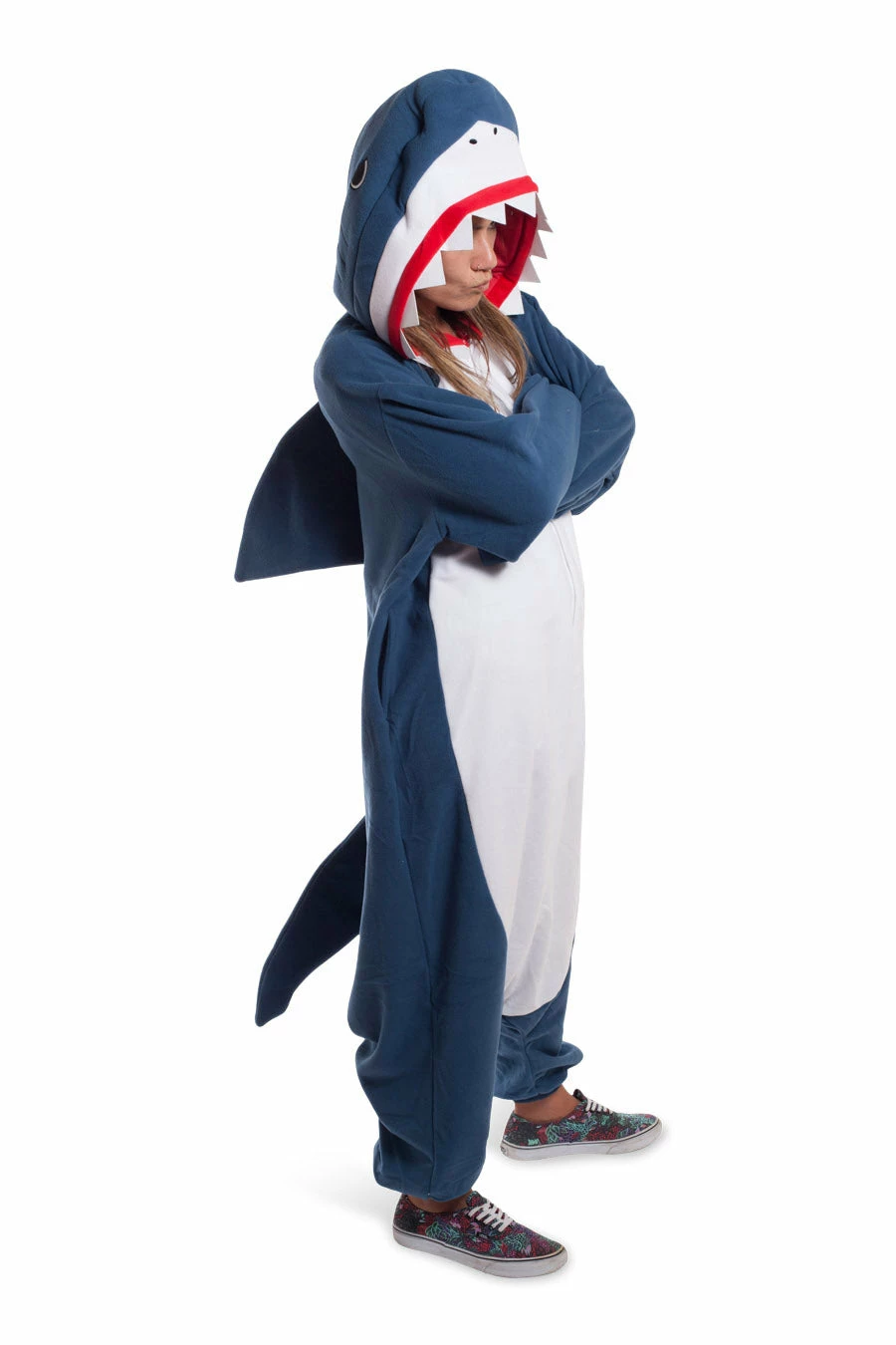 Presenting: the Shark Kigurumi! This is one dorsal fin that’s adorable enough to draw people into the water, not scare them out of it. With a big, roomy hood that sort of makes you look like you’ve been shark bait and soft, cosy arm-fins, you’ll both look and feel like somefin’ real cute.