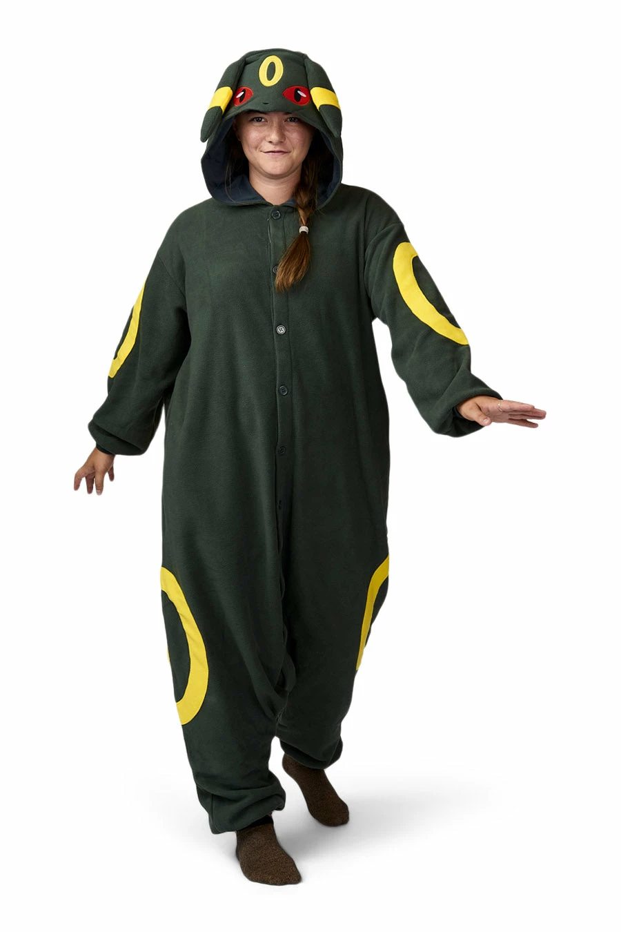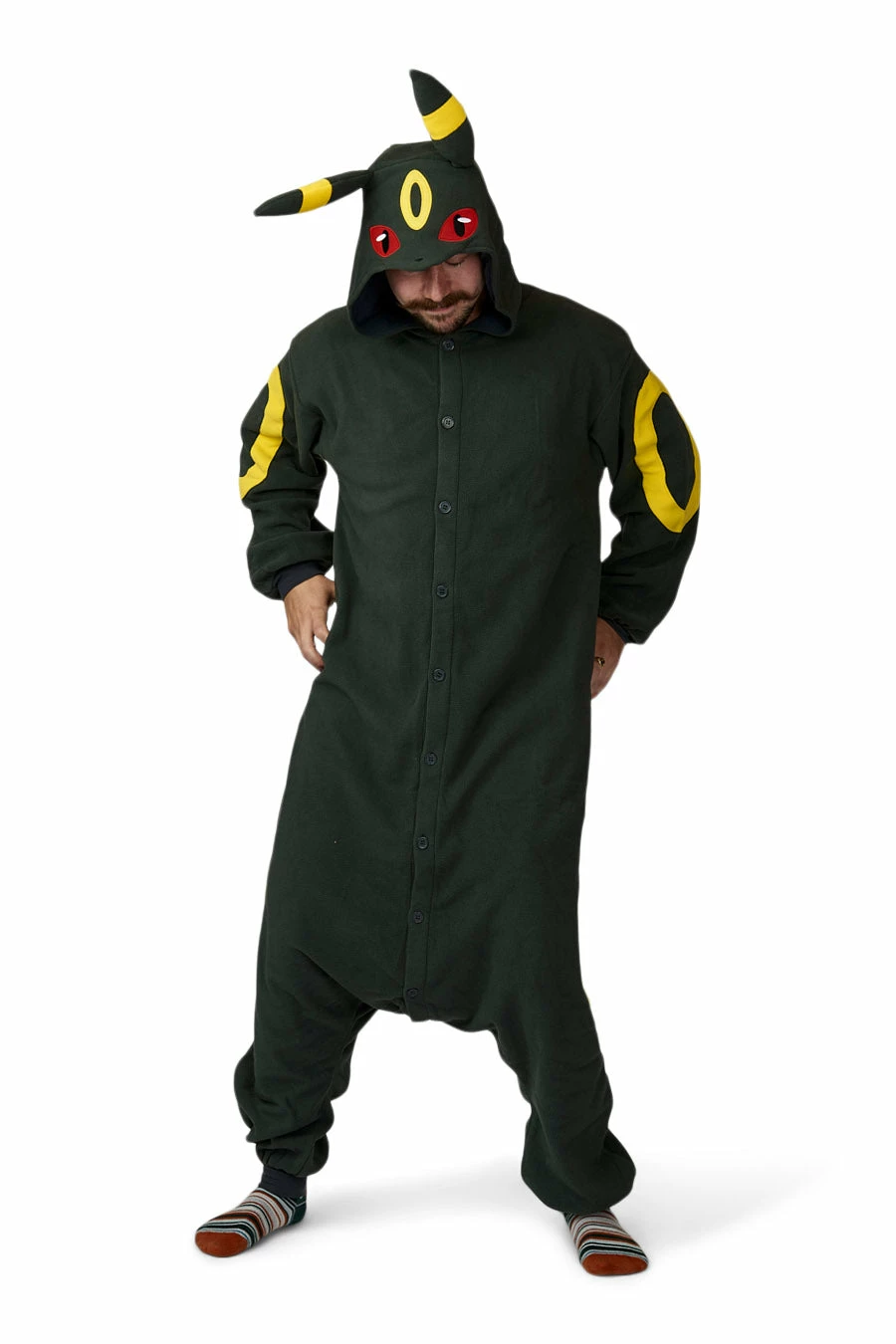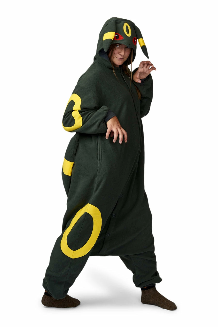 Evolve your onesie game by donning this sleek and sumptuously comfy Umbreon Kigurumi. Why not wear it while waiting in the darkness for your friends and family to find you? Thatβs when youβll go on the attack, leaping about and having fun. Or, you could take after the real-life inspiration for this onesie and lurk about in the dark, being all mysterious.