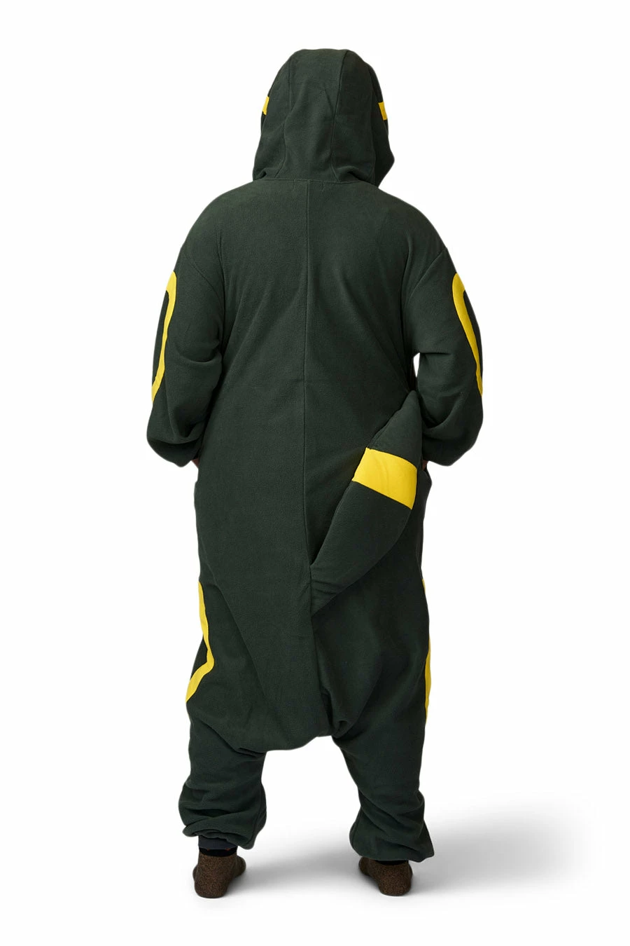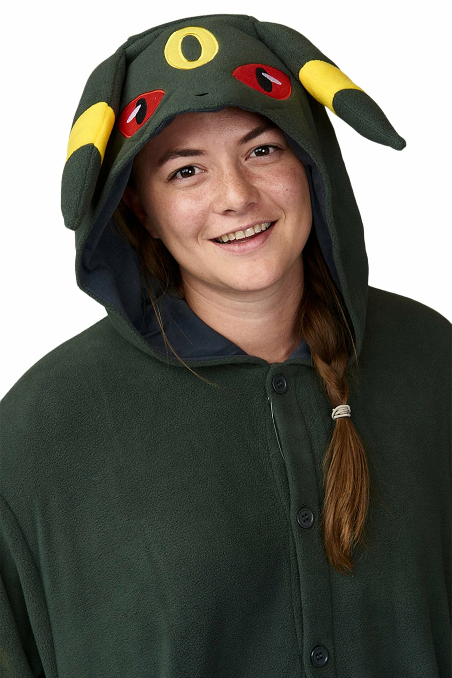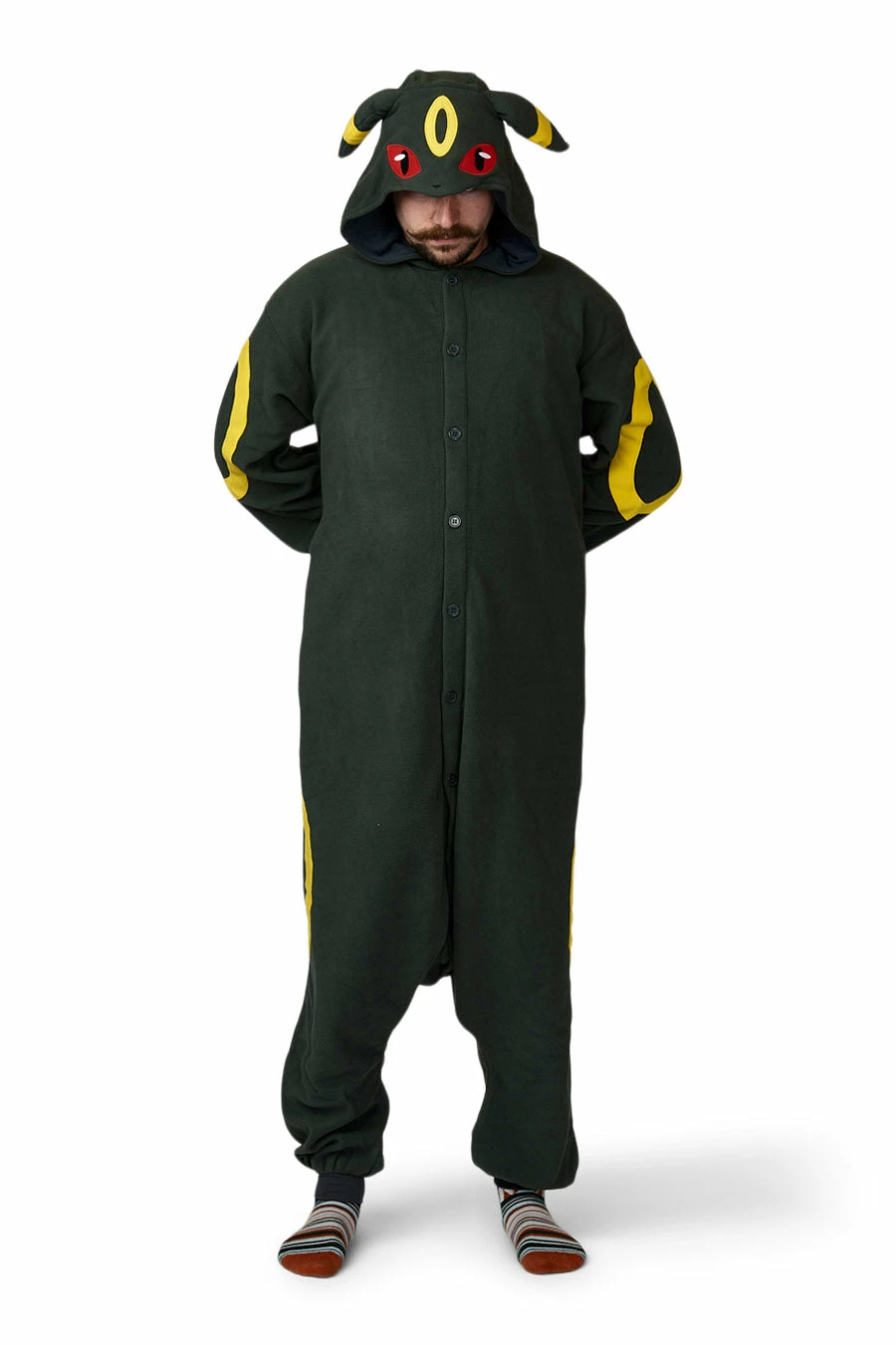 Evolve your onesie game by donning this sleek and sumptuously comfy Umbreon Kigurumi. Why not wear it while waiting in the darkness for your friends and family to find you? Thatβs when youβll go on the attack, leaping about and having fun. Or, you could take after the real-life inspiration for this onesie and lurk about in the dark, being all mysterious.