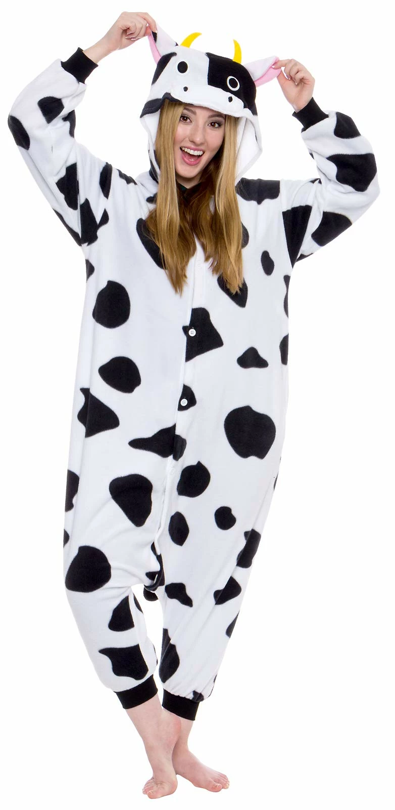 Onesies so great? Classic cow spots and accent horns for field-grazing fun.